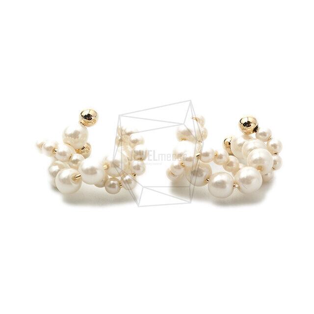 ERG-1433-G/2PCS/Round Earcuffs Earrings/20mm X 22mm/Gold Plated Over Brass,Imitation pearl