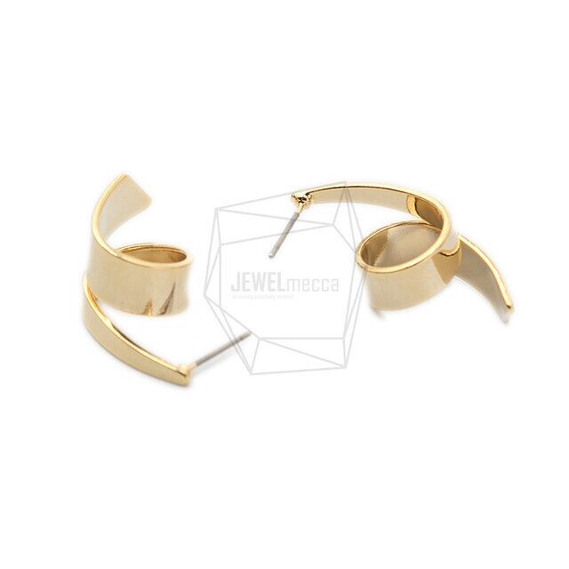 ERG-1435-G/2PCS/twist Post Earrings/15mm x 30mm/Gold Plated over Brass/Titanium post