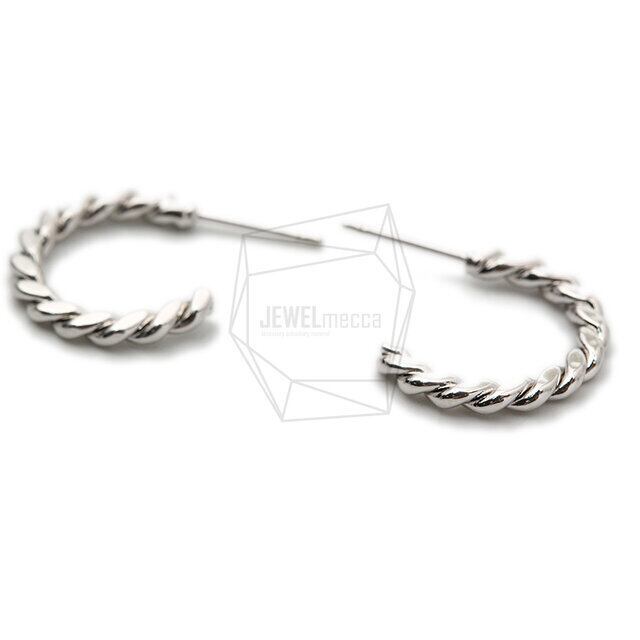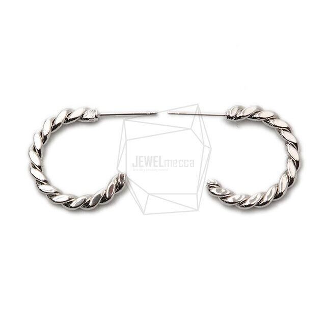 ERG-1401-R/2PCS/twist Post Earrings/20mm x 20mm/Rhodium Plated over Brass/Titanium post