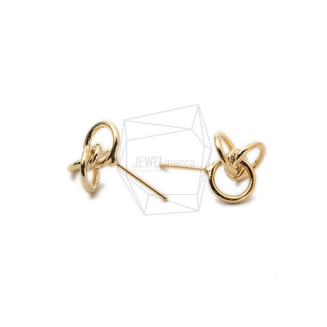 ERG-1405-G/2PCS/Wire Petal Flower Earring Post/12mm x 12mm/Gold Plated Over Brass
