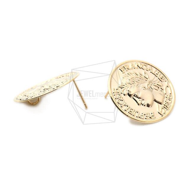 ERG-1406-G/2PCS/Coin Post Earring/23mm x 23mm/Gold Plated Over Brass