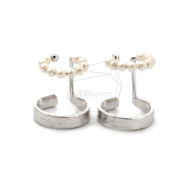 ERG-1437-R/2PCS/Brushed Round Earcuffs Earrings/18mm X 20mm/Rhodium Plated Over Brass