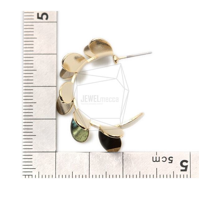ERG-1438-G/2Pcs-Round flower Post Earring/ 20mm x 35mm /Gold Plated over Brass/Stainless Post