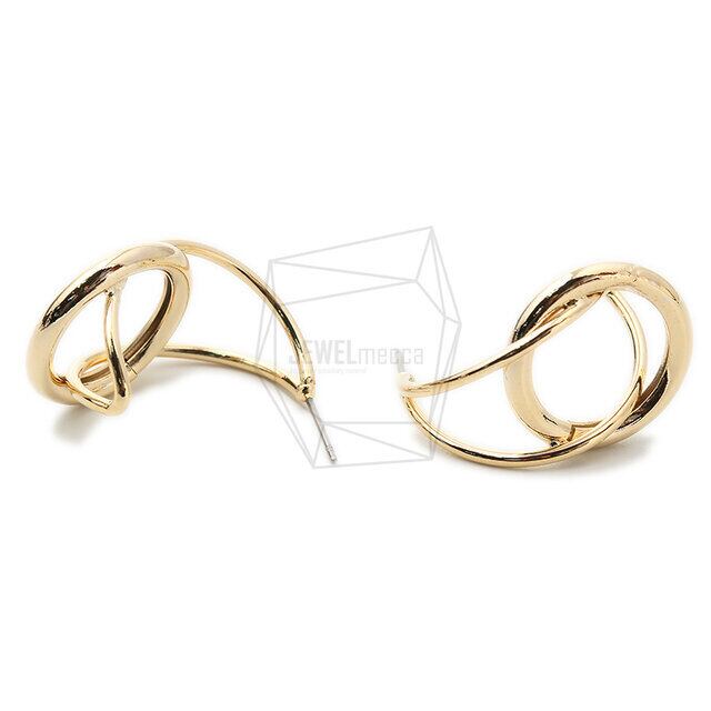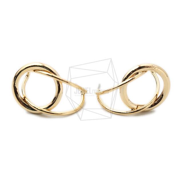 ERG-1440-G/2PCS/Double round Post Earring/20mm X 29mm/Gold Plated Over Brass, Titanium post