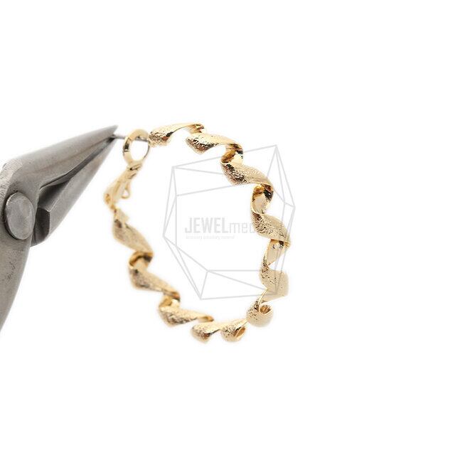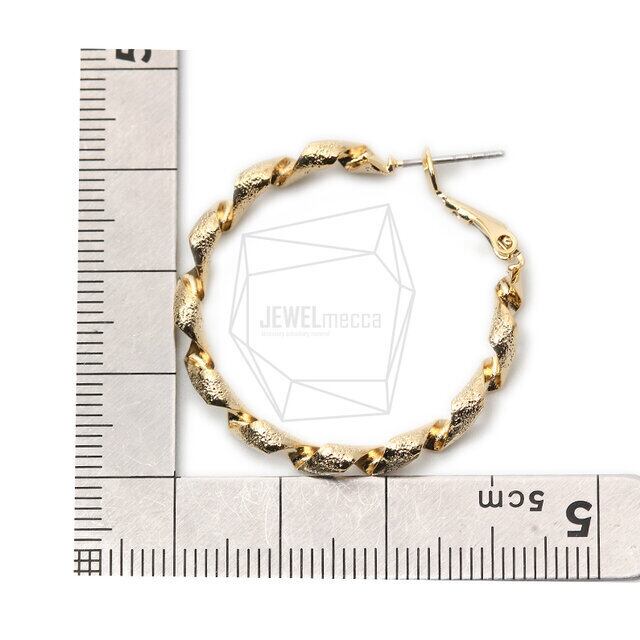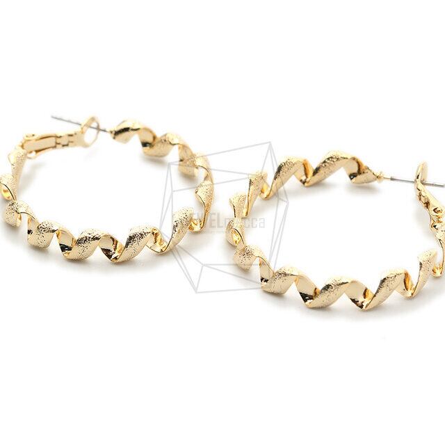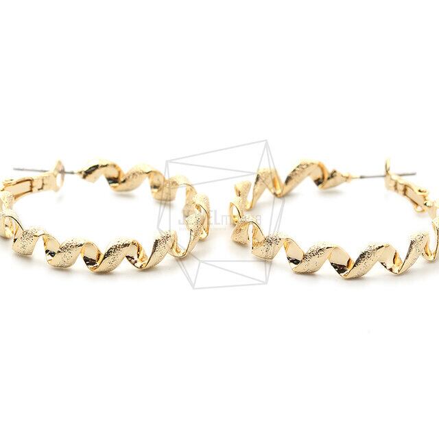 ERG-1442-G/2PCS/Wave Round Ear Post/ 23mm x 23mm/Gold Plated Over Brass/Titanium post