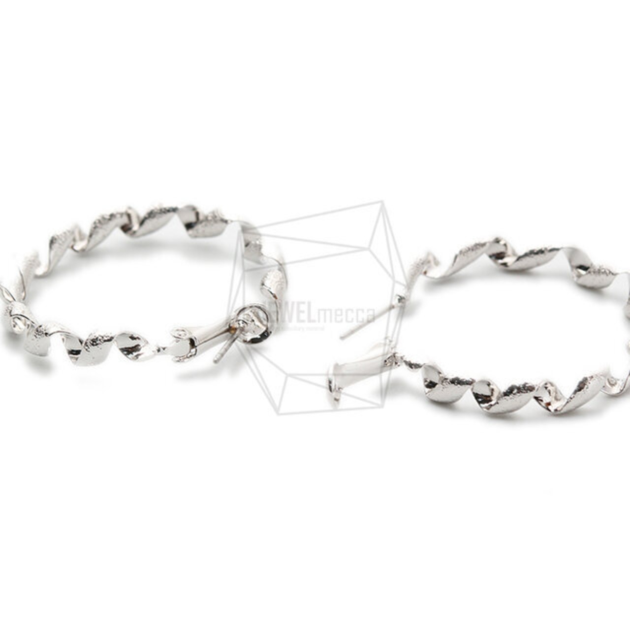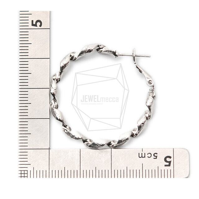 ERG-1442-R/2PCS/Wave Round Ear Post/ 23mm x 23mm/Rhodium Plated Over Brass/Titanium post