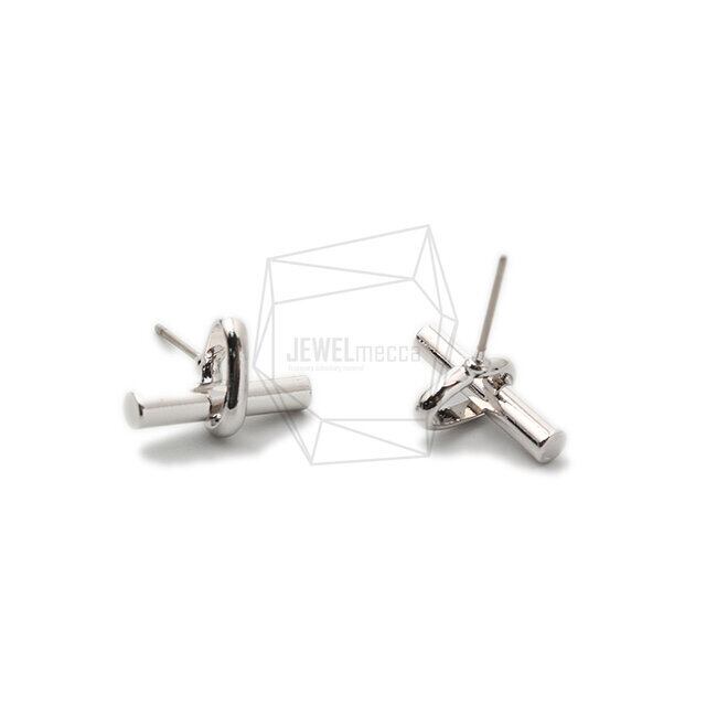 ERG-1444-R/2PCS/Small bar Post Earring/8mm X 10mm/Rhodium Plated Over Brass,Titanium post