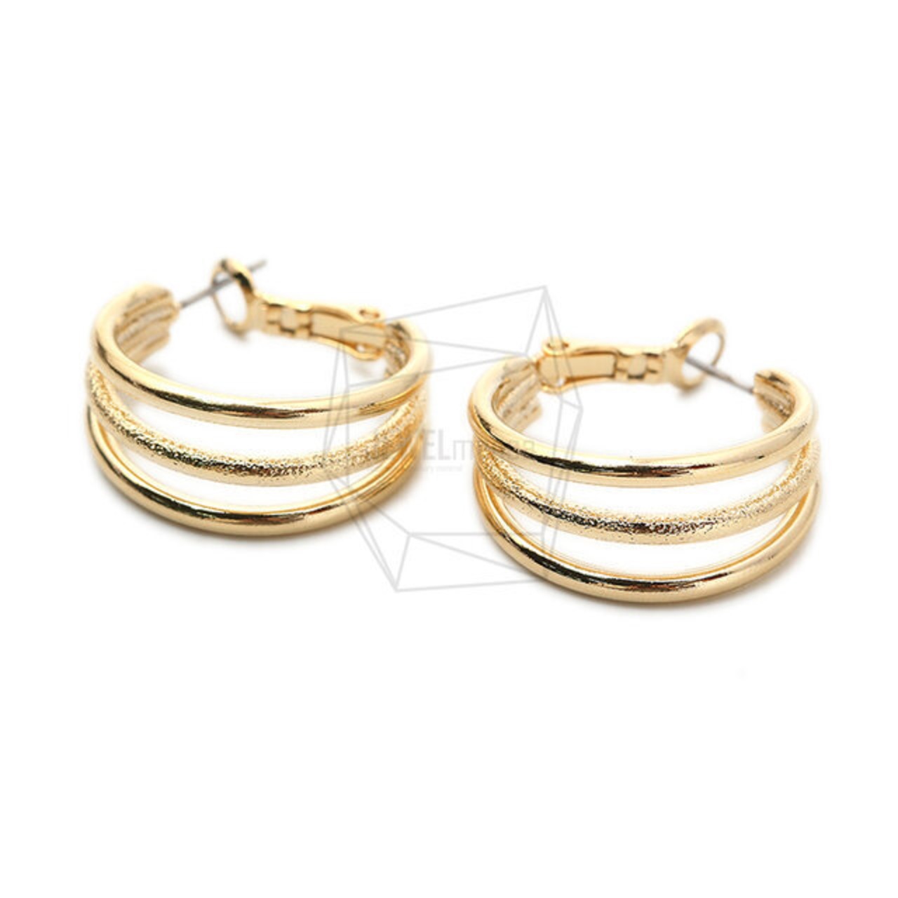 ERG-1446-G/2PCS/Double round Post Earring/23mm X 25mm/Gold Plated Over Brass, Stainless Post