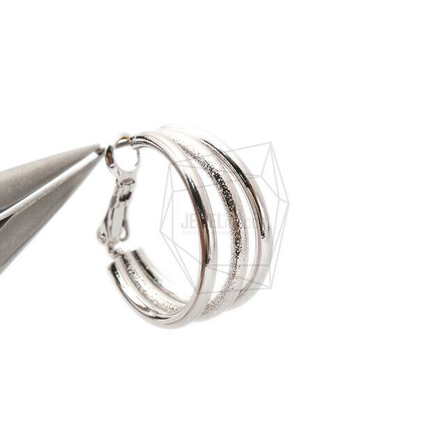ERG-1446-R/2PCS/Double round Post Earring/23mm X 25mm/Rhodium Plated Over Brass, Stainless Post