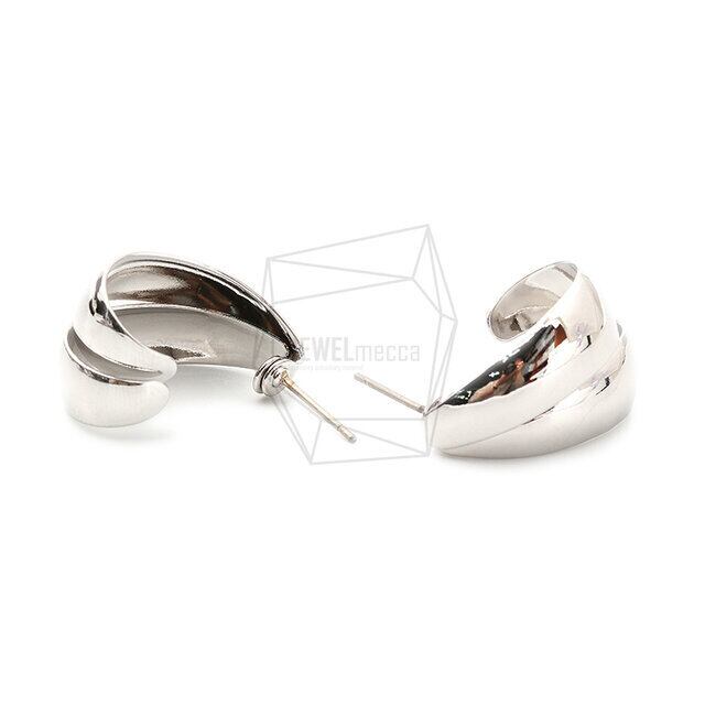 ERG-1447-R/2PCS/Double L Shape Post Earring /15mm x 23mm/Rhodium Plated Over Brass/Titanium post