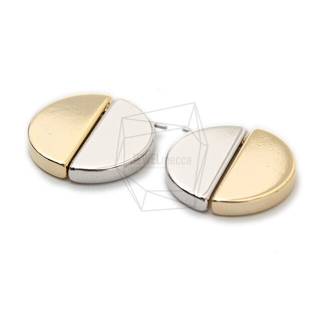 ERG-1460-GR/2SET/Circle Earring Post,Clutch SET /20mmx20mm/Gold&Rhodium Plated over Brass/Titanium post