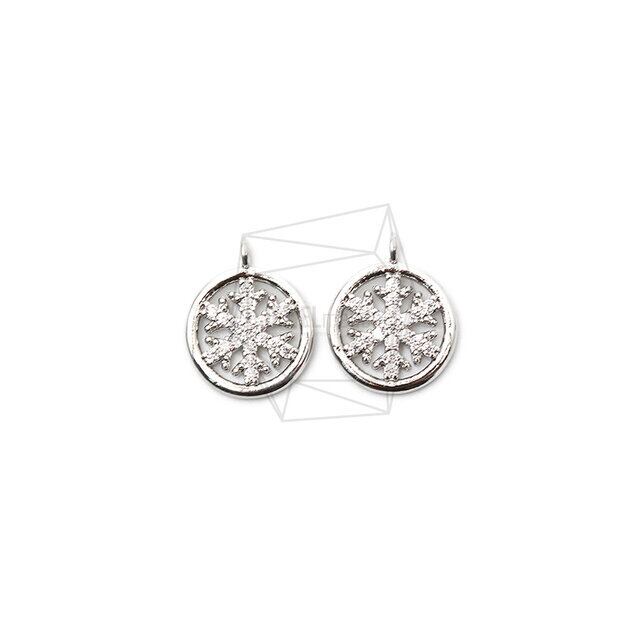 PDT-2353-R/2PCS/Round Snow Flakes Pendant/10mm X 12mm/ Rhodium Plated Over Brass
