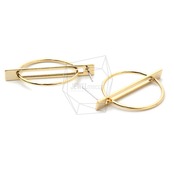 ERG-1474-G/2Pcs-Round bar Ear Post/ 37mm x 40mm /Gold Plated over Brass,Stainless Post