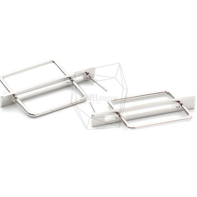ERG-1475-R/2Pcs-Square bar Ear Post/ 35mm x 40mm /Rhodium Plated over Brass,Stainless Post
