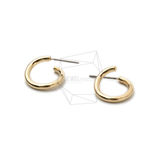 ERG-1478-G/2PCS/Simple Round Earring/14mm x 14mm/Gold Plated over Brass,Titanium post