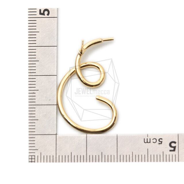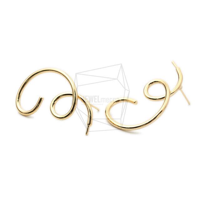 ERG-1481-G/2PCS/Wire Wave Post Earrings/20mm X 32mm/Gold Plated Over Brass
