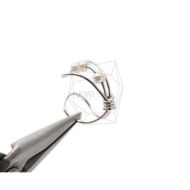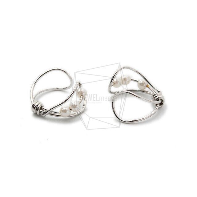 ERG-1483-R/2PCS/Round Earcuffs Earrings/15mm X 17mm/Rhodium Plated Over Brass,Imitation pearl