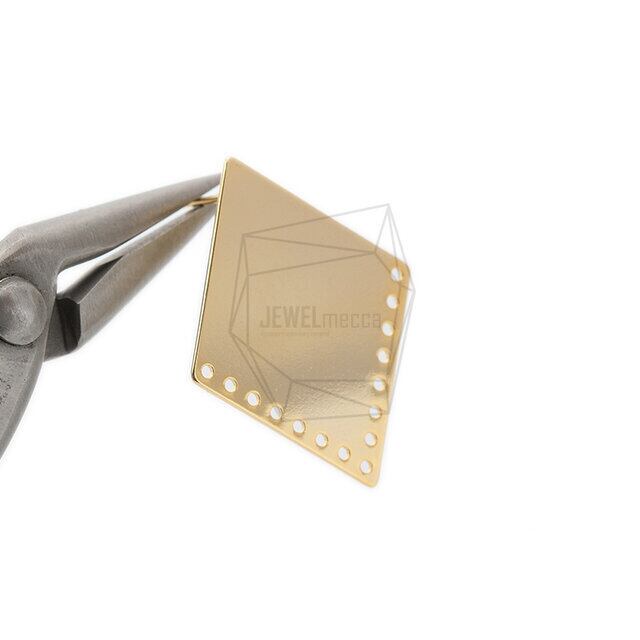 ERG-1484-G/2PCS/Rhombus Post Earring/26mm X 34mm/Gold Plated Over Brass