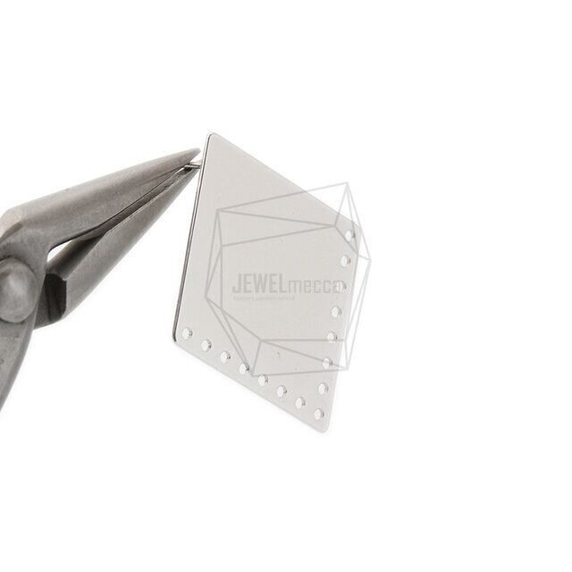 ERG-1484-R/2PCS/Rhombus Post Earring/26mm X 34mm/Rhodium Plated Over Brass