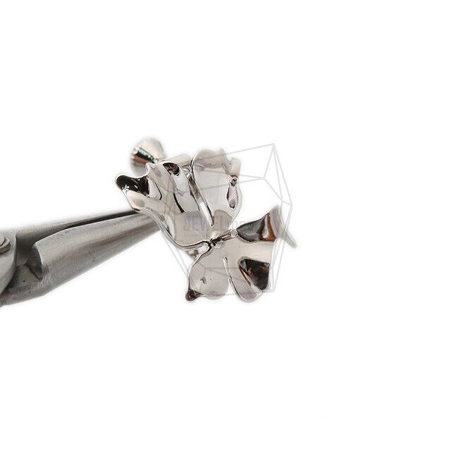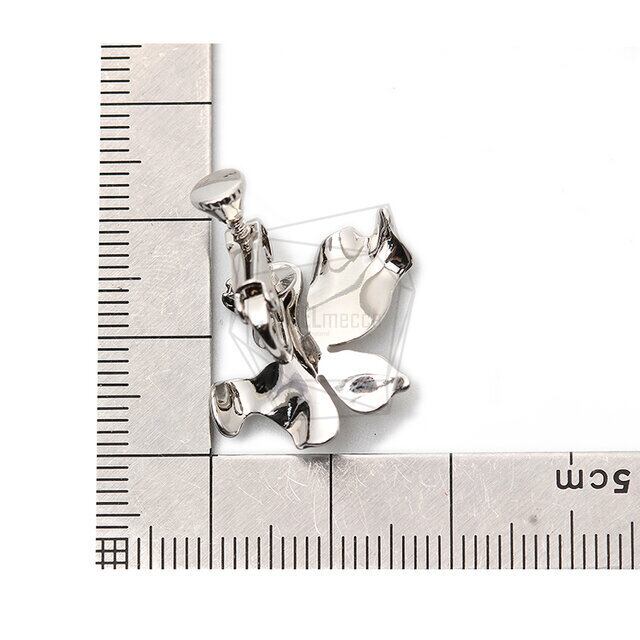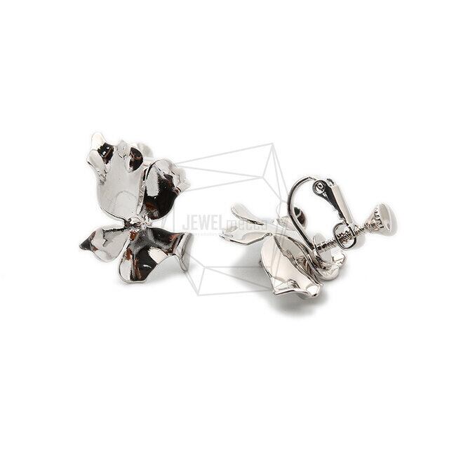 ERG-1487-R/2Pcs-flower Earring/Non Pierced Screw Back Clips Earring/ 16mm x 21mm /Rhodium Plated over Brass