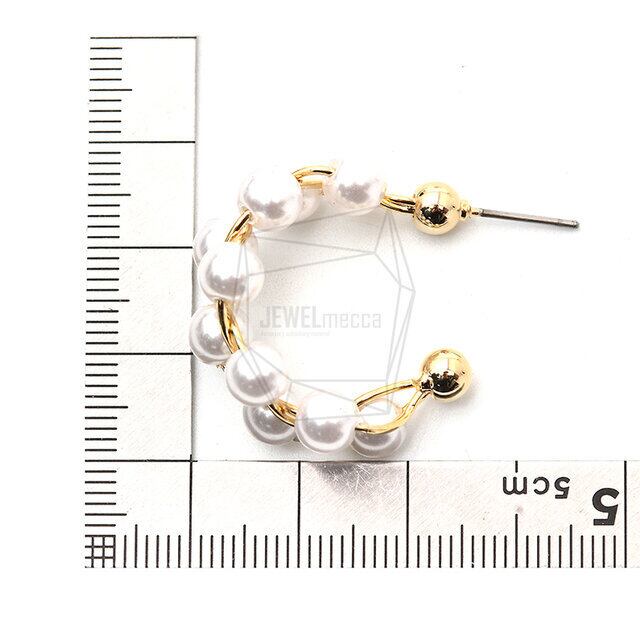 ERG-1488-G/2PCS/Pearl C shape Post Earring /26mm X 28mm/Gold Plated Over Brass,Imitation pearl, Titanium post