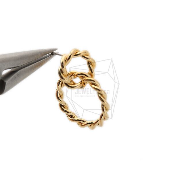 ERG-1489-G/2PCS/Two Linked rings Earring/20mm X 26mm/Gold Plated Over Brass,Titanium post
