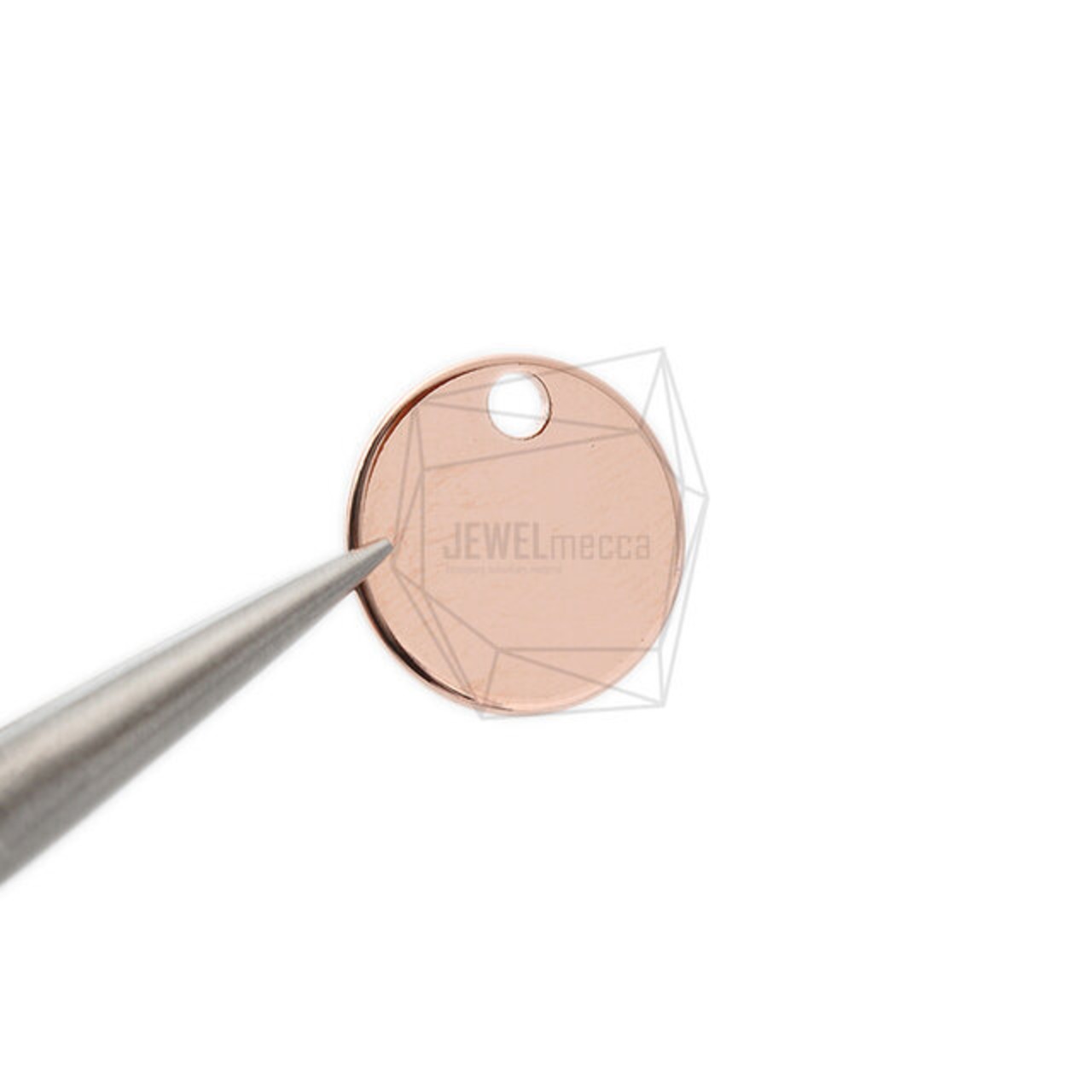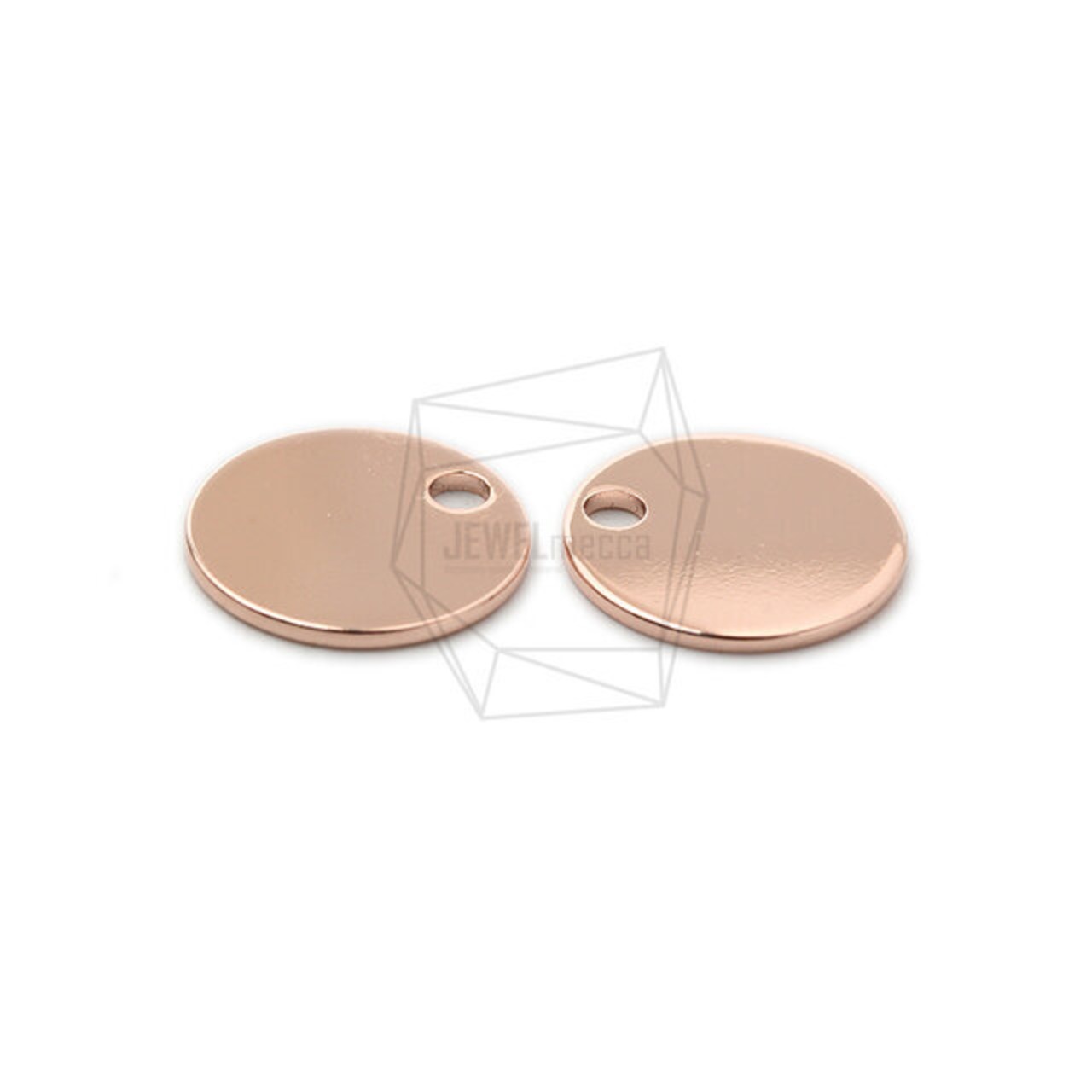 PDT-2361-PG/4Pcs-Circle Round Disk Pendant/ 15mm /Pink Gold Plated over brass