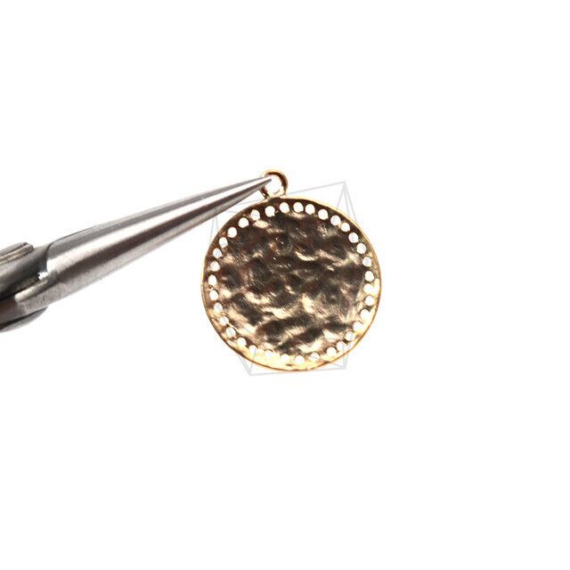 PDT-1518-MG/2PCS/Hammered Texture Disk Pendant /18mm X 20mm/Matte Gold Plated Over Brass