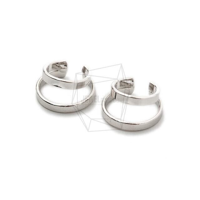 ERG-1503-R/2PCS/Brushed Round Earcuffs Earrings/15mm X 15mm/Rhodium Plated Over Brass