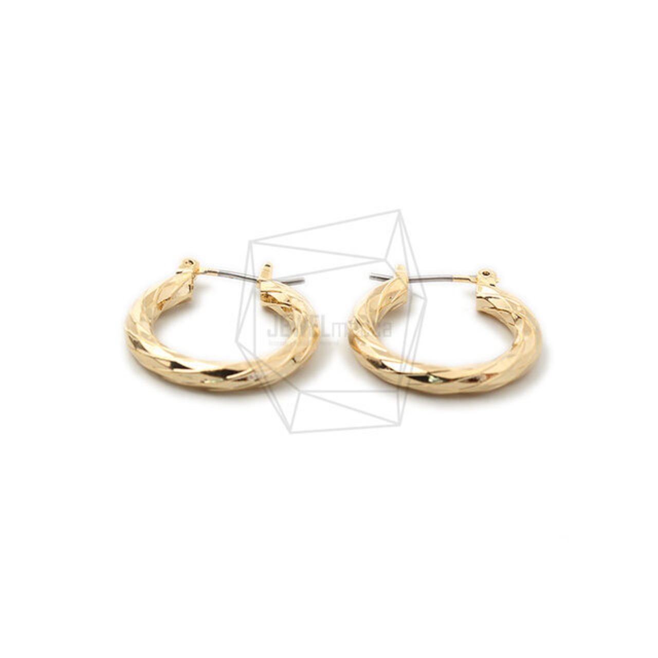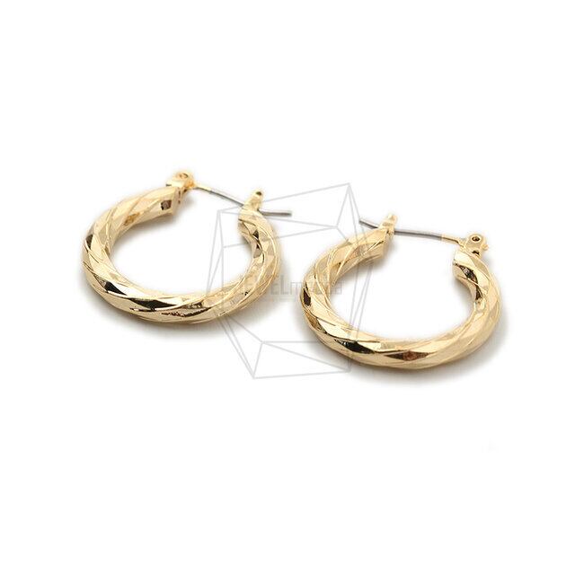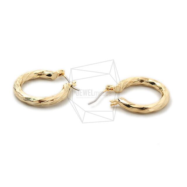 ERG-1514-G/2PCS/Twist Round Hoop Earrings/20mm X 22mm/Gold Plated Over Brass,Stainless Post
