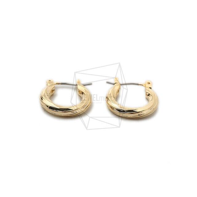 ERG-1515-G/2PCS/Twist Round Hoop Earrings/15mm X 17mm/Gold Plated Over Brass,Stainless Post