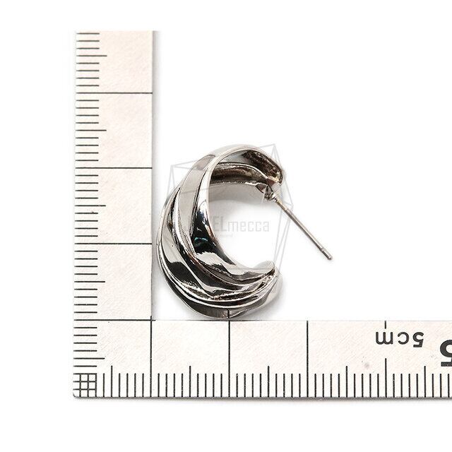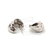 ERG-1516-R/2PCS/Double round Post Earring/23mm X 27mm/ Rhodium Plated Over Brass, Stainless Post