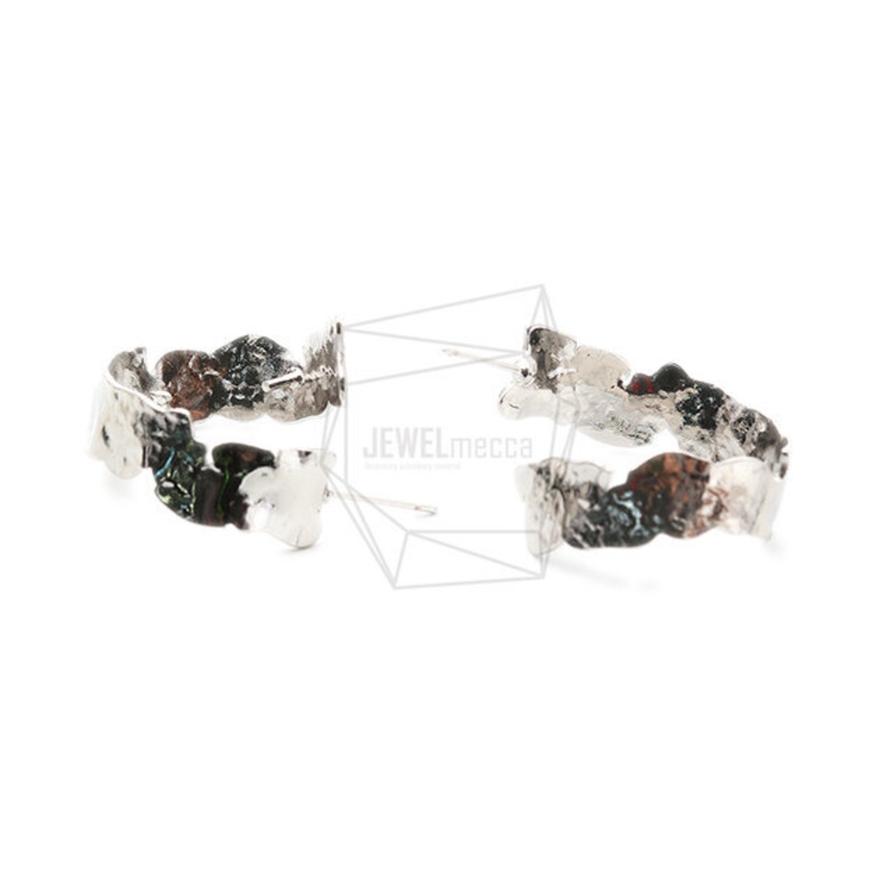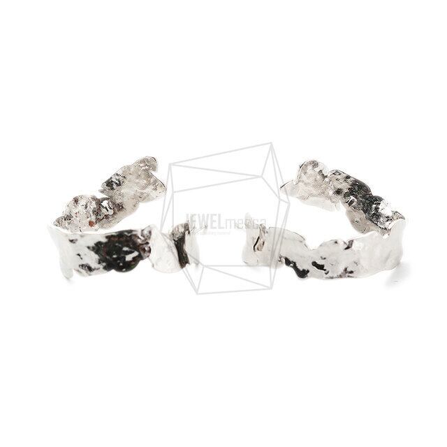 ERG-1519-R/2PCS/Wave Bar Hammered Texture Post Earring/23mm X 28mm/Rhodium Plated Over Brass