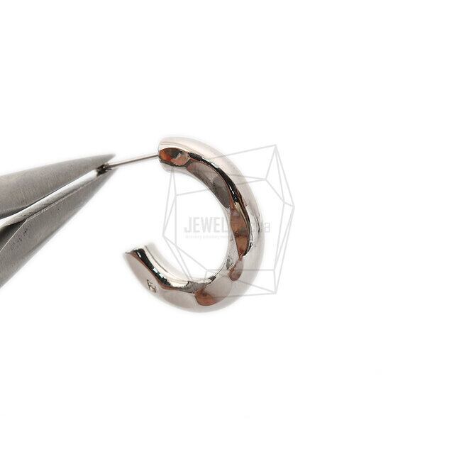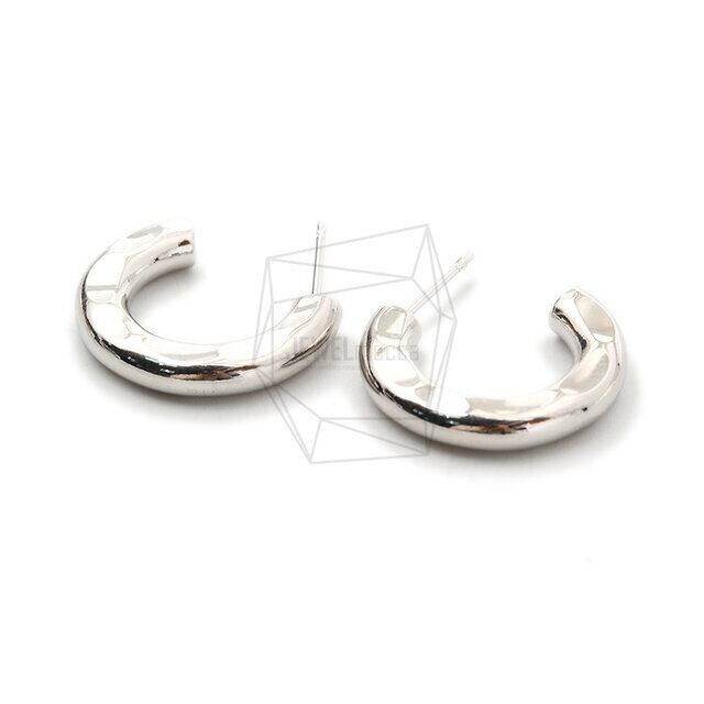 ERG-1522-R/2Pcs-Hammered Round Ear Post/ 17mm x 20mm /Rhodium Plated over Brass