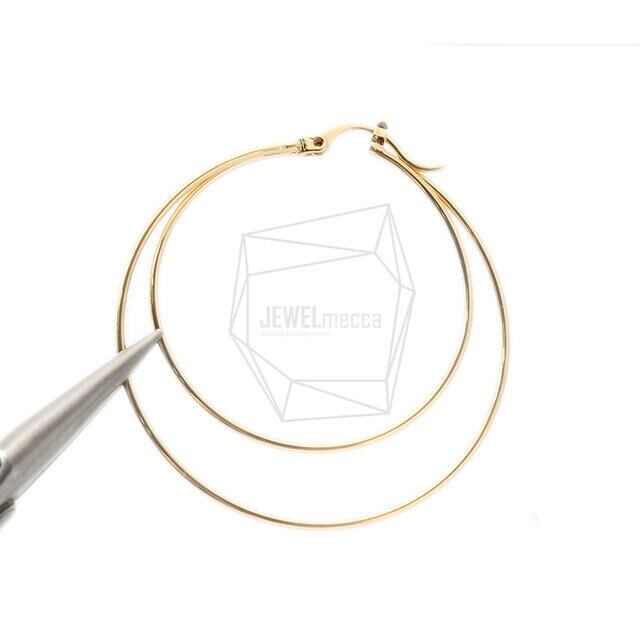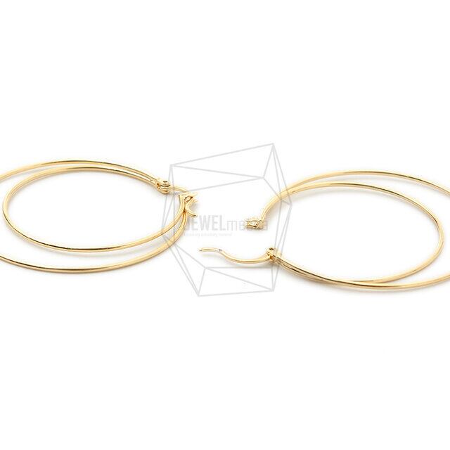 ERG-1524-G/2PCS/Double round Post Earring/43mm X 46mm/Gold Plated Over Brass, Stainless Post