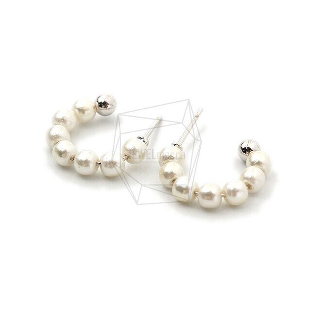 ERG-1525-R/2PCS/Pearl C shape Post Earring /15mm X 18mm/Rhodium Plated Over Brass,Imitation pearl, Titanium post