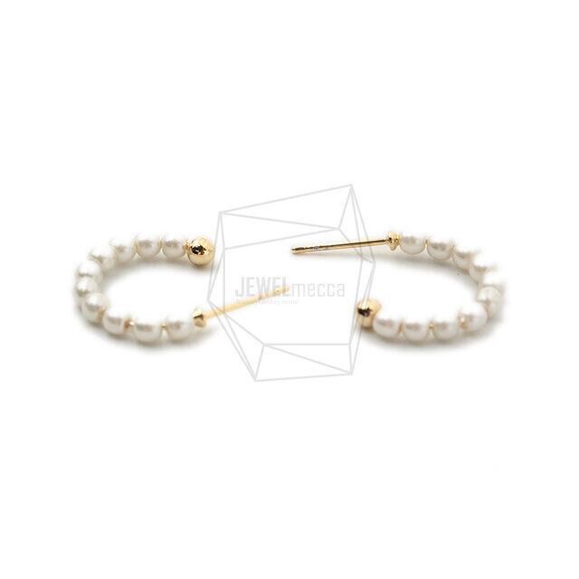 ERG-1527-G/2PCS/Pearl C shape Post Earring /15mm X 18mm/Gold Plated Over Brass,Imitation pearl, Titanium post