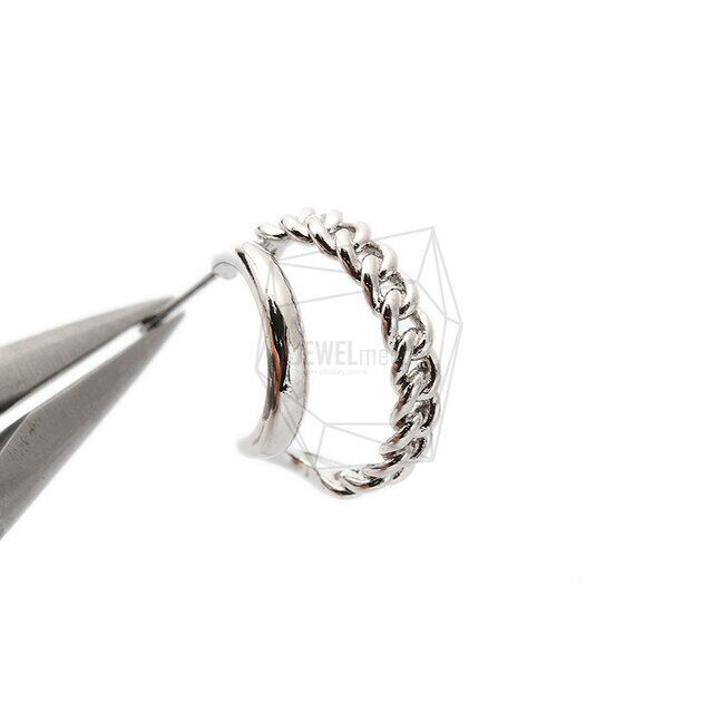 ERG-1536-R/2PCS/Double round Post Earring/17mm X 20mm/Rhodium Plated Over Brass, Stainless Post