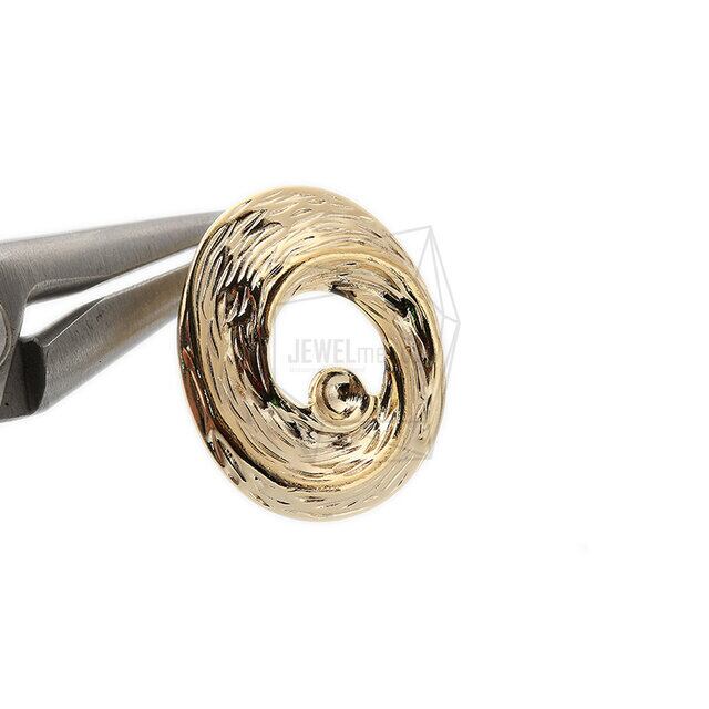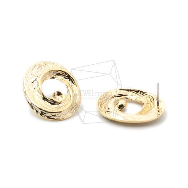 ERG-1537-G/2PCS/Round Post Earring/20mm X 25mm/Gold Plated Over Brass, Stainless Post