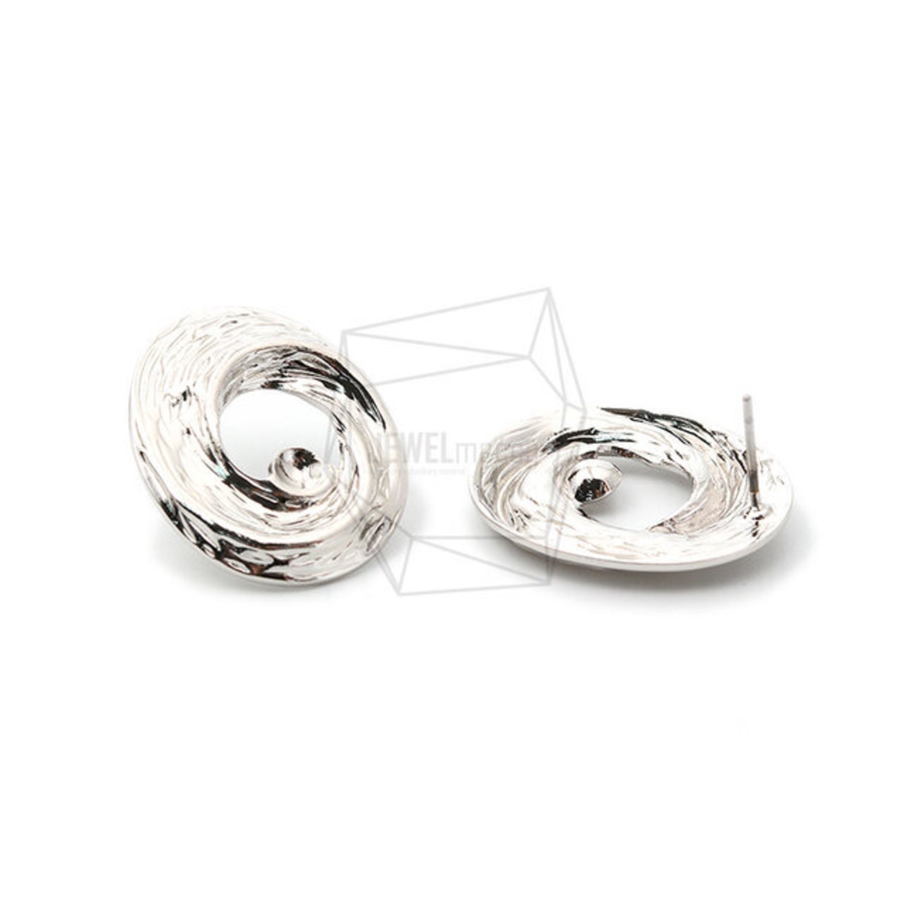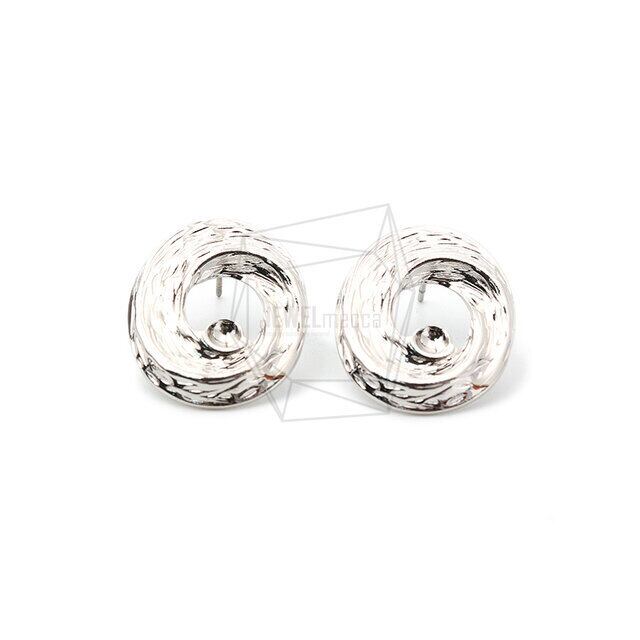 ERG-1537-R/2PCS/Round Post Earring/20mm X 25mm/ Rhodium Plated Over Brass, Stainless Post