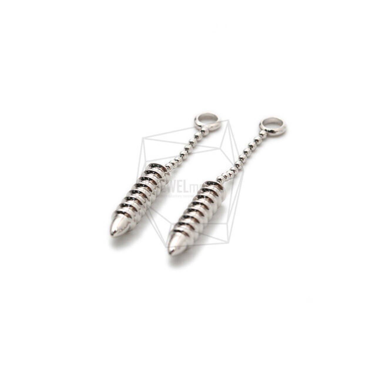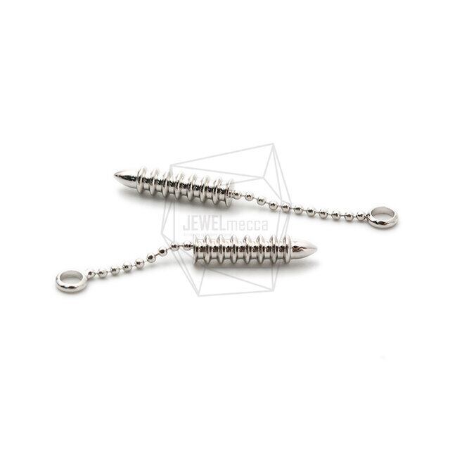 ERG-1545-R/2PCS/Screw nail Earring Charm /3mm X 33mm/Rhodium Plated Over Brass