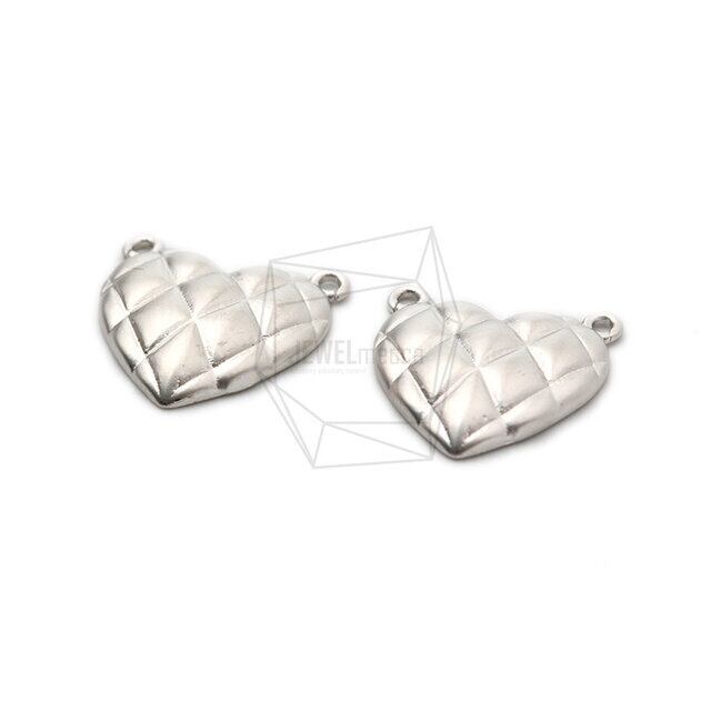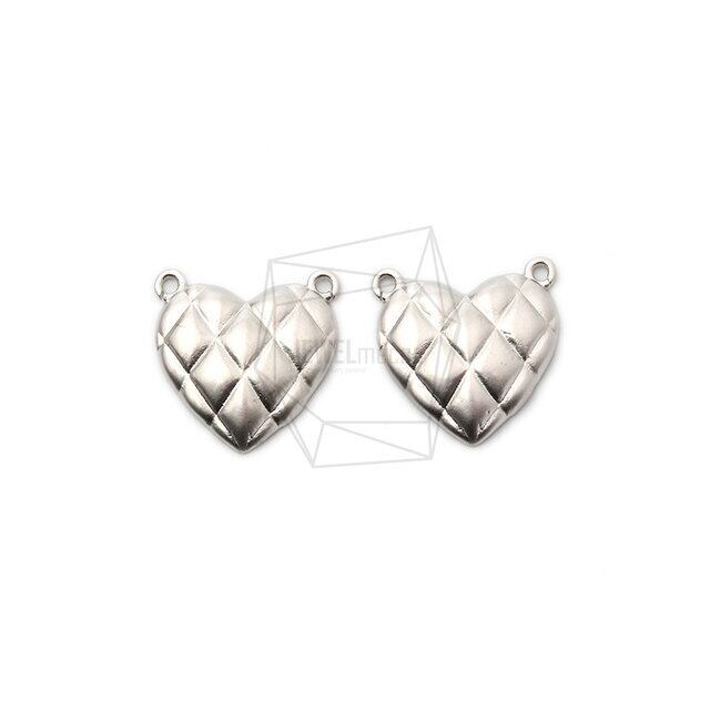 PDT-2380-MR/2PCS/Heart Pendant/15mm X 15mm/Matte Rhodium Plated Over Brass