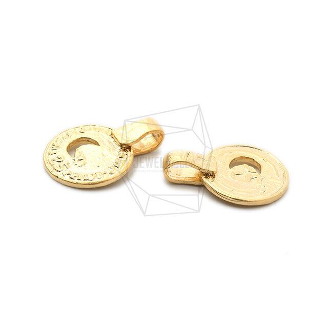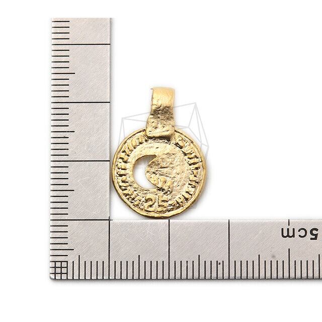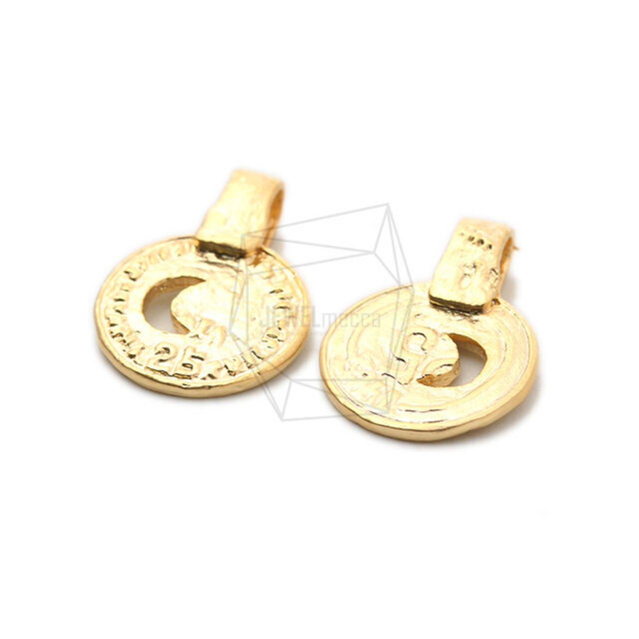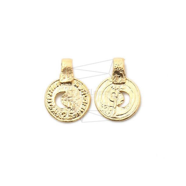 PDT-2381-MG/2PCS/Coin Pendant/ 16mm x 22mm/Matte Gold Plated Over Brass