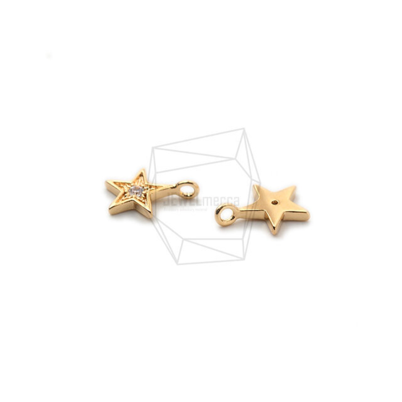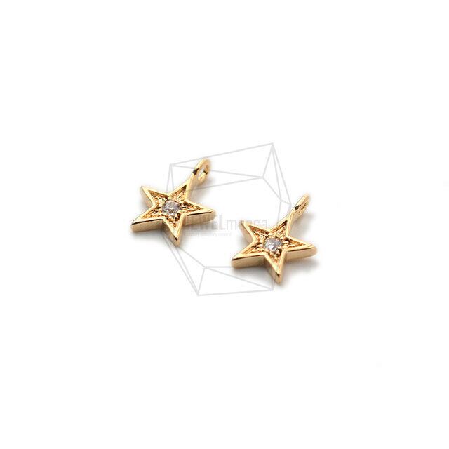 PDT-2382-G/2Pcs-CZ Mini Star Pendant / 7mm x 9mm /Gold Plated over brass