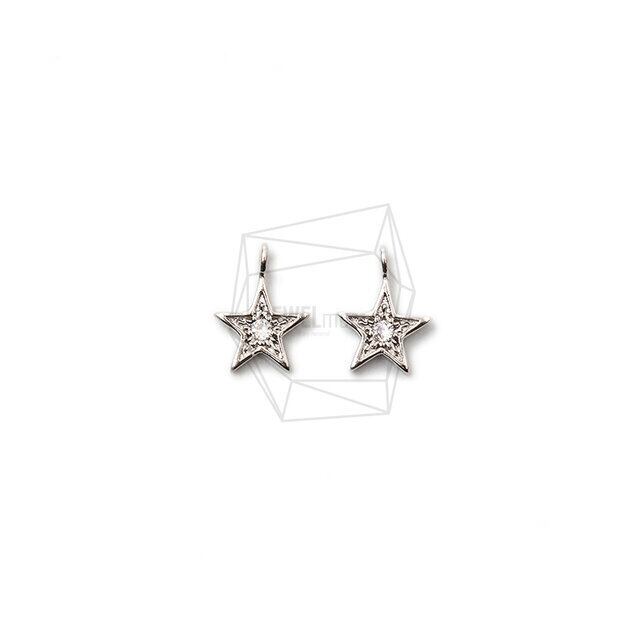 PDT-2382-R/2Pcs-CZ Mini Star Pendant / 7mm x 9mm /Rhodium Plated over brass