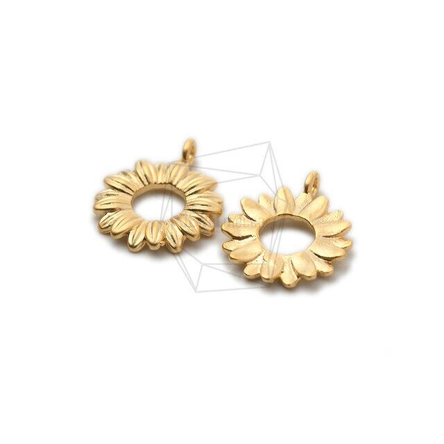 PDT-2385-MG/2PCS/Sunflower Flame Pendant/ 12mm X 14mm/Matte Gold Plated Over Brass