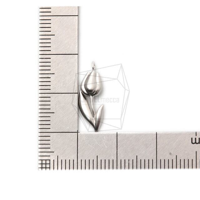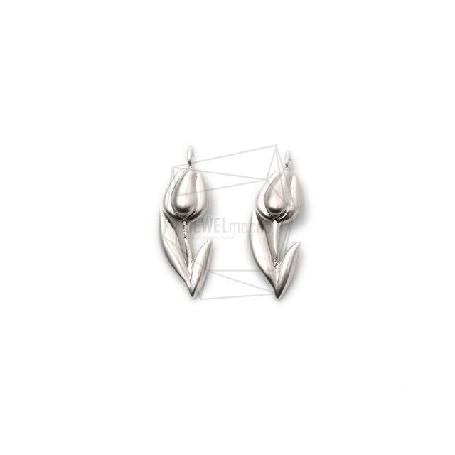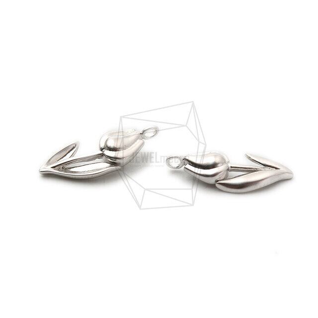 PDT-2388-MR/2PCS/Tulip Pendant/ 8mm x 18mm/Matte Rhodium Plated over Brass