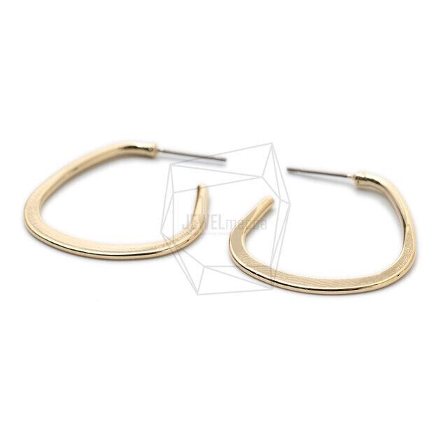 ERG-1553-G/2PCS/ L Shape Post Earring /26mm x 27mm/Gold Plated Over Brass/Titanium post