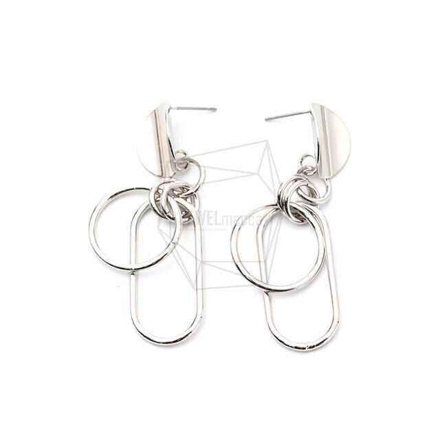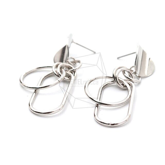 ERG-1554-R/2PCS/Multi Linked Circles post Earring/18mm X 52mm/Rhodium Plated Over Brass,Titanium post