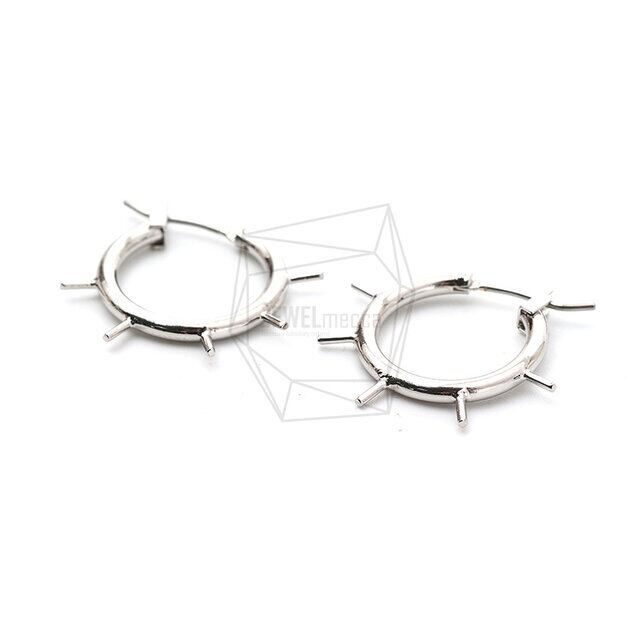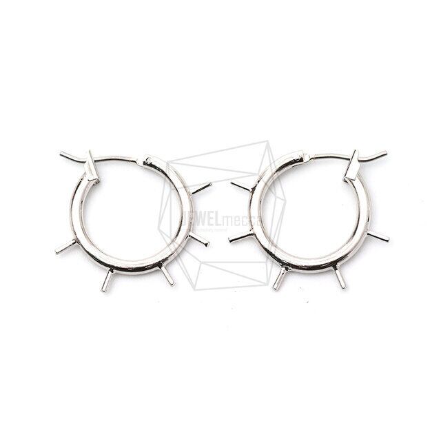 ERG-1559-R/2PCS/Pearl Pin Round Post Earring/21mm X 21mm/Rhodium Plated Over Brass, Stainless Post